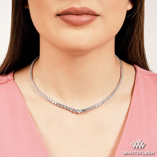 Please note: Carat total weight variants of 8.00ctw and over are considered a special order and non-returnable. A gorgeous statement piece that will bring you serious glamour to any look, is our new 4-Prong Graduated Diamond Tennis Necklace. 8.00ctw variant shown in all photographs.