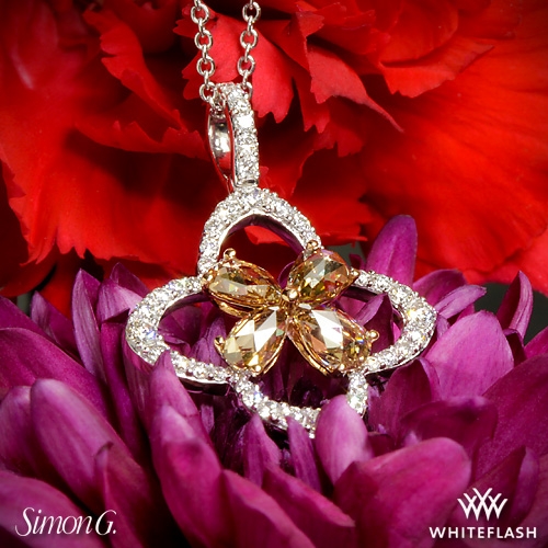 18k White and Rose Gold Simon G. DP244 Natures Prime Diamond Pendant