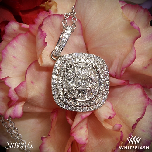 The Simon G. MP1797 Diamond Pendant is part of the Simon Set collection. It is embellished with round brilliant melee.